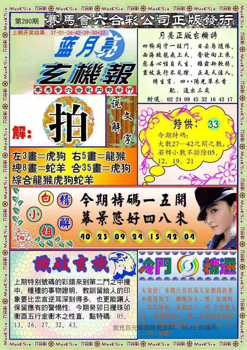 280期:男女两肖【男肖+猪蛇】开:鼠42准 |